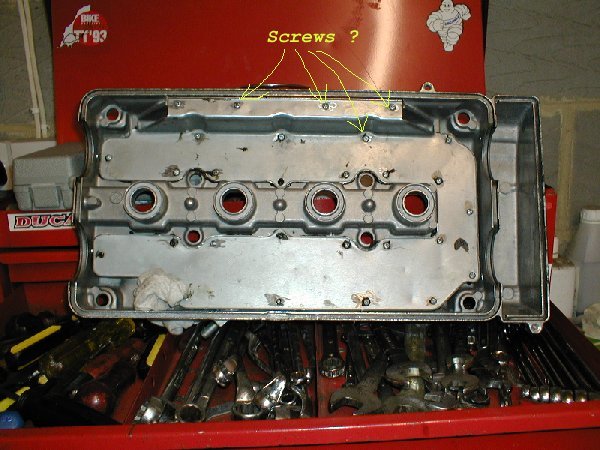 Cam cover has screws holding baffle on, should be rivets ! |