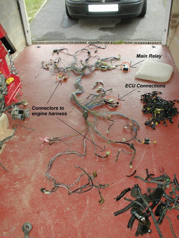 Wiring harness stripped back |