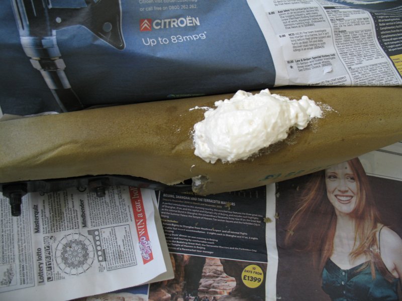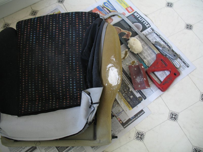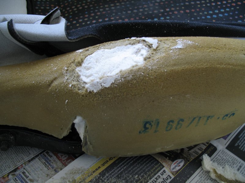 Decided to try and repair the bolster before fitting the seats, after a bit of thinking decided to try and repair the damage to the sponge using expanding foam, its cheap and can be easily shaped/cut/sanded.