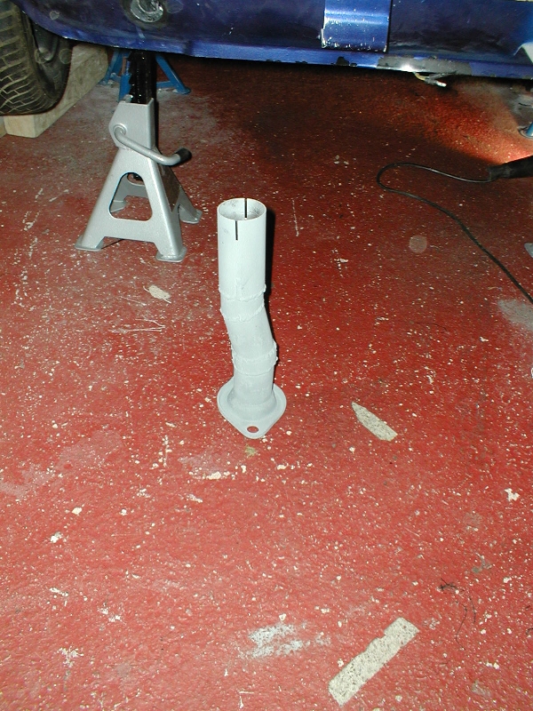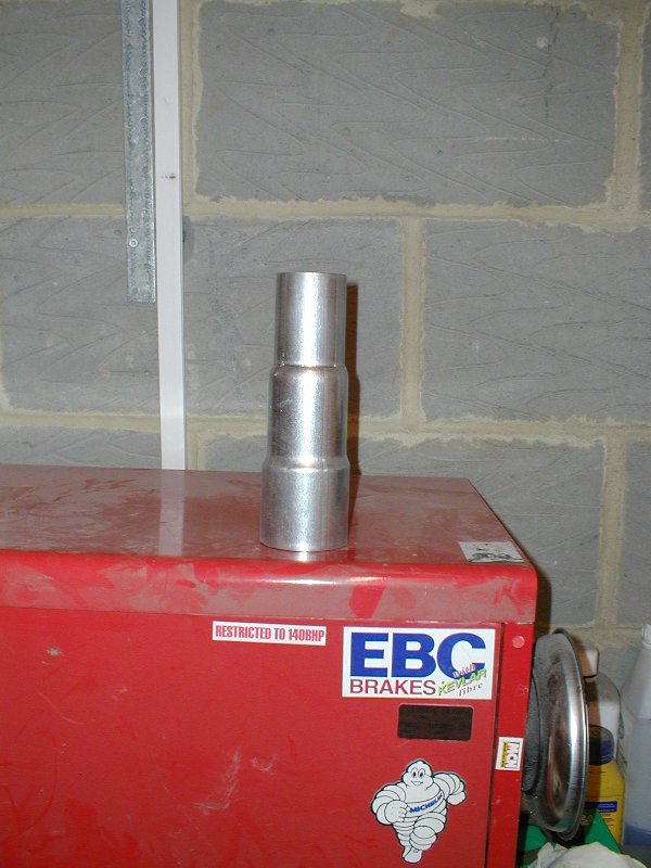 Adapter lowers the exhaust so that it clears the gearlinkage |