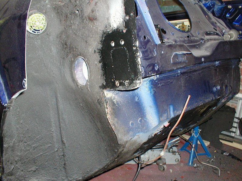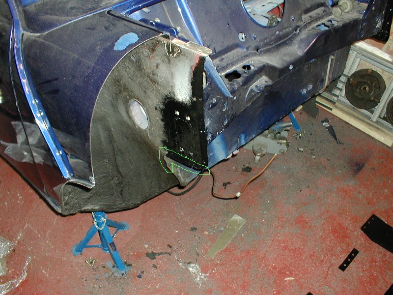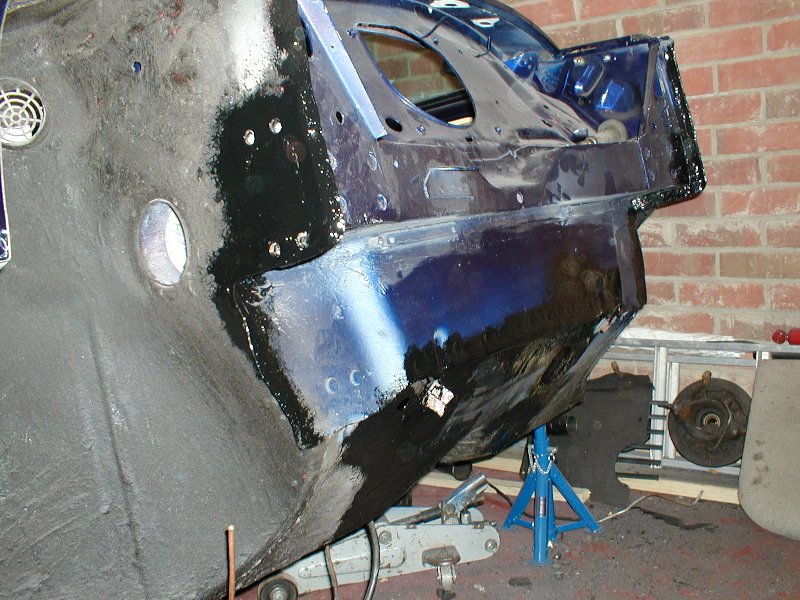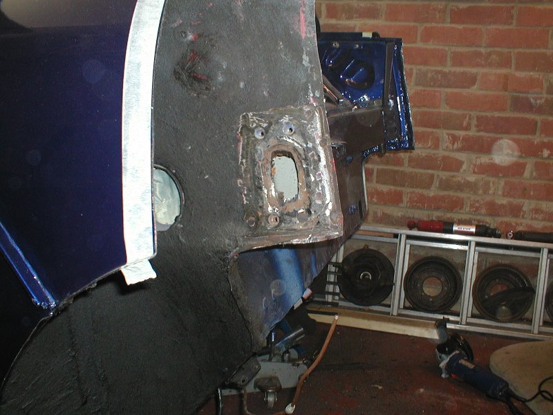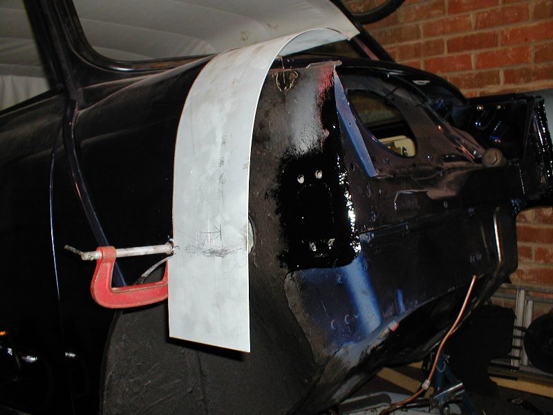 Repaired hole O/S, strip of metal clamped in place for extension |