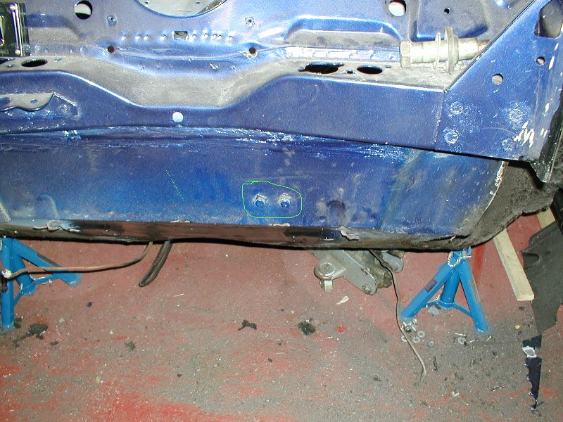 Found holes under front shock mounts both sides |