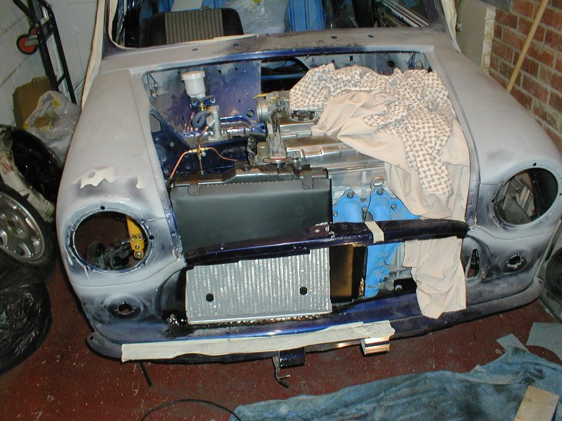 Radiator in place with the first fit of the cowling. |
