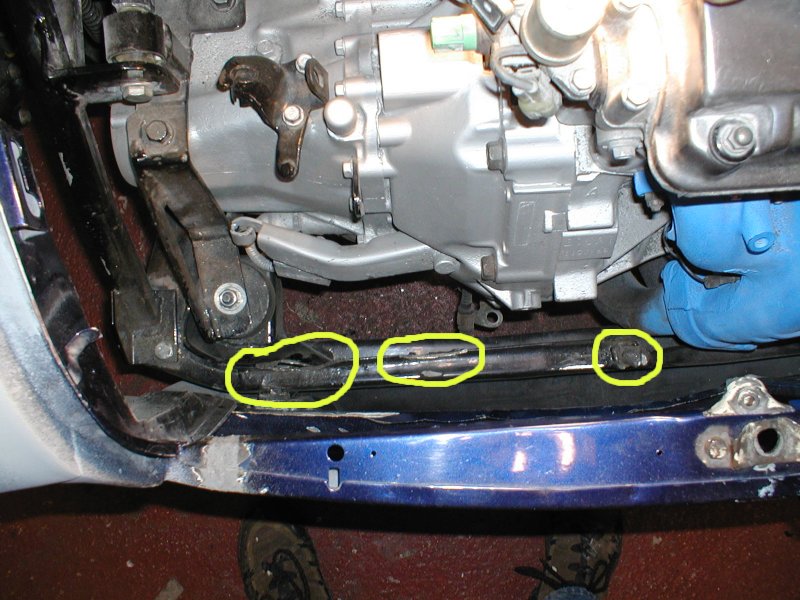 Subframe modified to allow the rad to sit lower, marked areas have been ground away. |